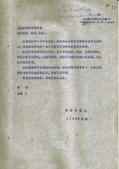 初来上海,只记得冬天很冷,不像北京,家家都有煤炉。但是求学的精神不受环境阻碍,穿厚衣,带手套,照常做题。我们那时的校长是黎照寰,机械工程学院院长是胡端行,如今想来,他们能够在那兵戈扰攘、动乱不安的时期维持校园正常运行,实属不易。