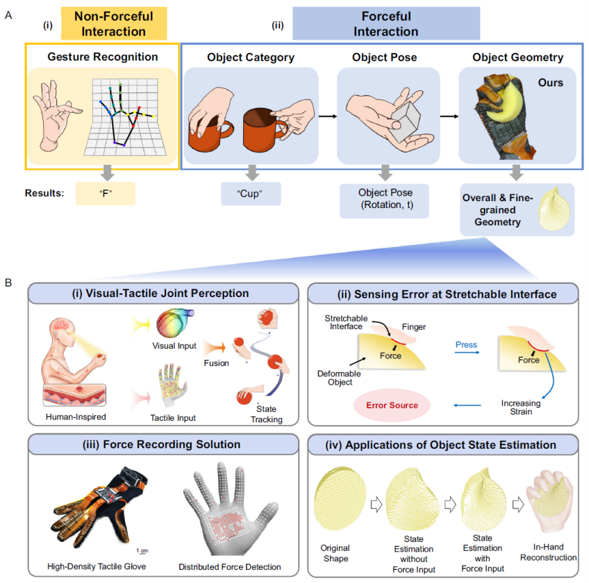 近日,欧宝app官方网站下载人工智能学院卢策吾团队和欧宝app官方网站下载电子信息与电气工程学院微米纳米加工技术全国重点实验室刘景全团队在人机交互领域取得重要进展,相关成果以“Capturing forceful interaction with deformable objects using a deep learning-powered stretchable tactile array”(使用深度学习驱动的可拉伸触觉阵列捕捉可形变物体的力学交互)为题,在《Nature Communications》上发表。