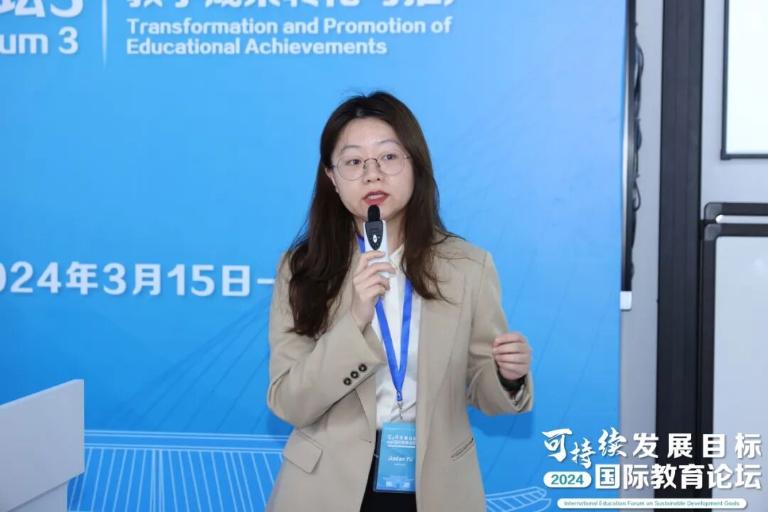 联合国训练研究所(UNITAR)政府与公共事务主任Jiadan YU作题为“增强青年权能:联合国学生全球胜任力培养策略”的专题报告。她介绍了UNITAR的机构概况和在《Youth 2030: The UN Youth Strategy》框架下的全球胜任力培训项目。UNITAR成立于1963年,宗旨是为新独立的联合国会员国培养的年轻外交官,提供聚焦气候变化、人工智能等主题的多边外交培训,使他们具备在外交环境中工作所需的知识和技能,每年有10万名参与者。目前UNITAR在不断拓展与中国高校的合作。