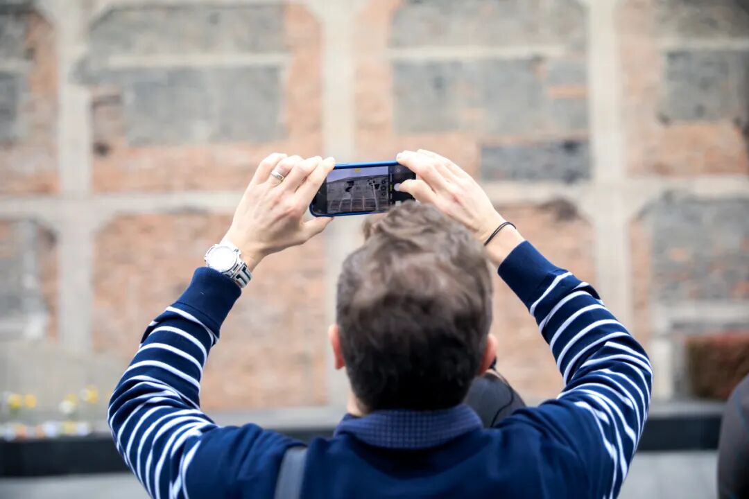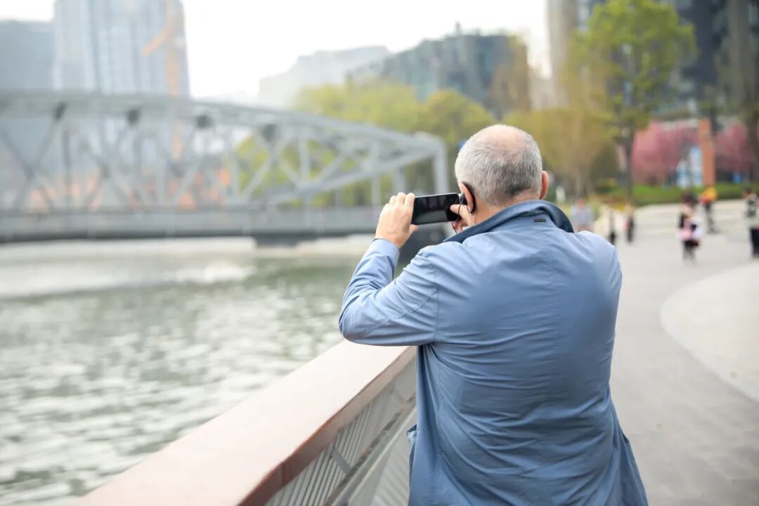 浙江路桥,是外白渡桥的“姐妹桥”。在百余年前建成时,就使用了当年的高科技“钢结构变截面桁架”。在苏州河边,讲解老师给大家展示了著名摄影师陆元敏的浙江路桥旧照,与今日城市更新后的景象相比,真可谓翻天覆地。
