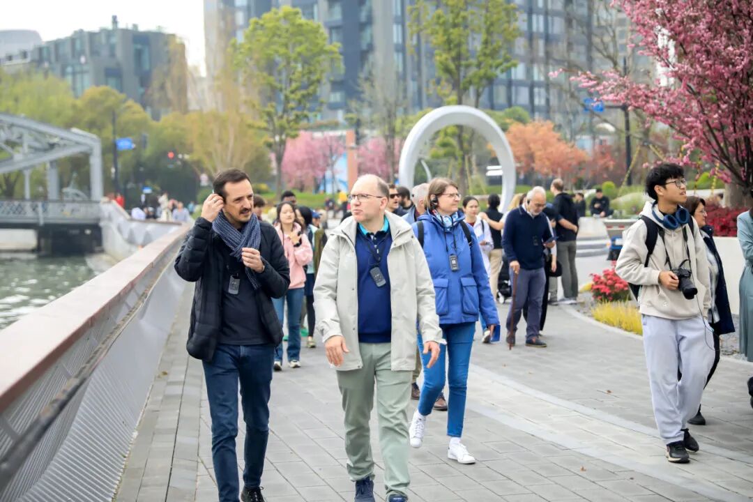3月31日,在这个浪漫春日的午后,欧宝app官方网站下载巴黎卓越工程师学院组织在校中法师生,包括来自法国合作学校访问教授、交换生,以及五位法国工程师职衔委员会专家,一行30余人,走近上海的母亲河苏州河畔,通过一场CityWalk,了解上海悠久的人文历史和新时代的城市巨变。