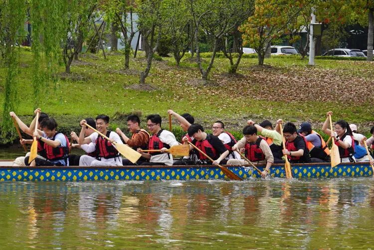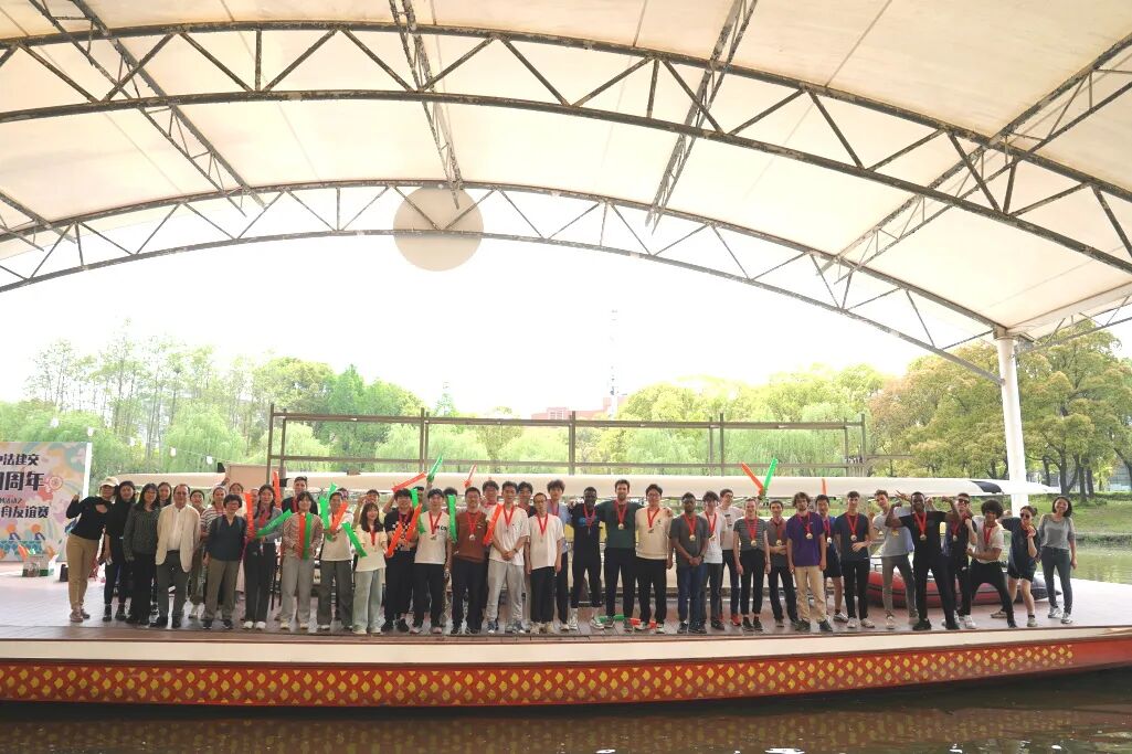 在激烈的比赛中,由法国综合理工大学学生代表团与在校法国学生共同组建的法国代表队,与由学院学生和上海交大龙舟爱好学生协会组成的中国代表队展开了激烈的对决。他们奋力划桨,团结合作,展现出了龙舟赛的独特魅力。比赛过程中,观众们热情高涨,加油声、欢呼声此起彼伏,现场气氛十分热烈。