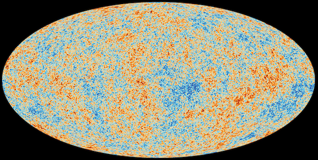 为什么说能量超过100EeV的天照粒子、OMG粒子都是不应该出现的呢?这还得从宇宙大爆炸说起。1965年,美国射电天文学家阿诺·彭齐亚斯(Arno Penzias)和罗伯特·威尔逊(Robert Wilson),在调试与卫星通信的天线时发现,不管天线指向什么方向,在白天还是黑夜,总会测到7.35厘米波长左右的微波噪声。他们发现的噪声,实际上是美国物理学家乔治·伽莫夫(George Gamow)、拉尔夫·阿尔菲(Ralph Alpher)和罗伯特·赫尔曼(Robert Herman)在1948年预言的宇宙微波背景辐射(Cosmic Microwave Background, CMB)。CMB是支持宇宙大爆炸理论的关键证据,现代宇宙学正是建立在宇宙大爆炸理论之上。宇宙微波背景辐射 (CMB) 温度图,由普朗克(Planck)卫星测量;温度微小的各向异性体现的是早期宇宙物质的非均匀分布,通过它我们得知当前宇宙中80%的物质是未知的。图片来源:sci.esa.int。