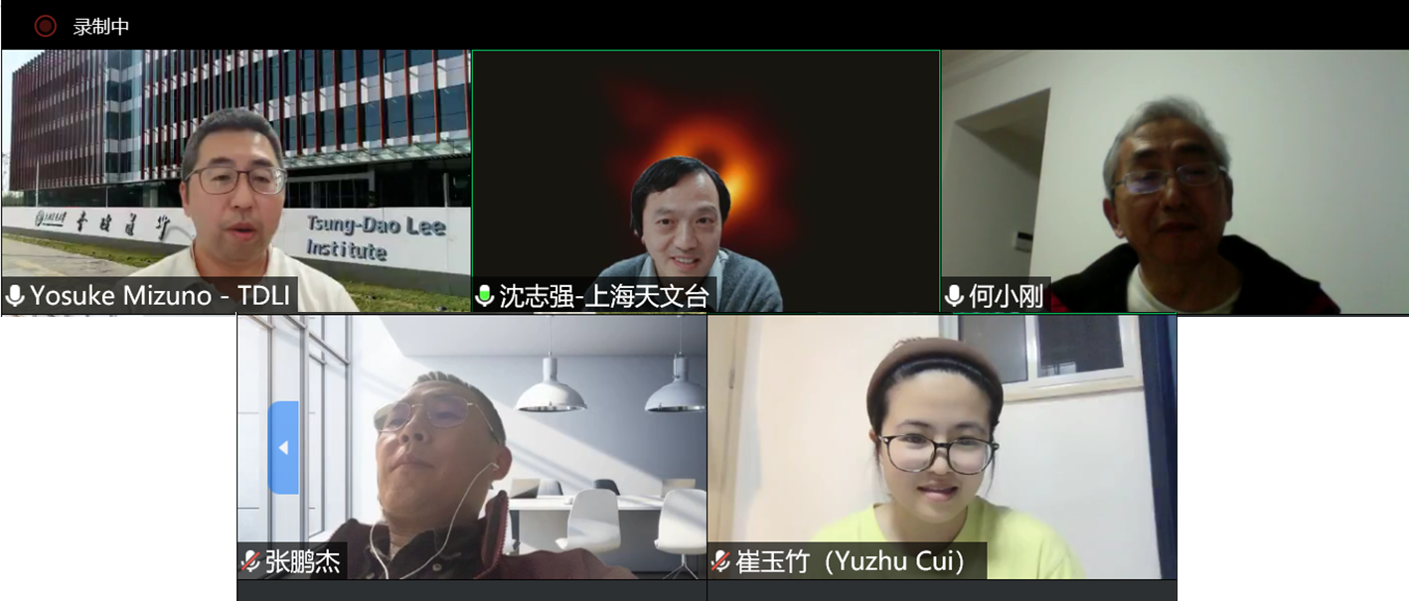 2022年5月18日晚18:30,主题为“First Sgr A* Event Horizon Telescope Results: The Shadow of the Supermassive Black Hole in the Center of the Milky Way”的第13期李政道前沿讲坛与专题学术报告会在线上举行。主讲人为参与EHT合作组的李政道学者水野陽介(Yosuke Mizuno),主持人为物理与天文学院教授、李政道研究所天文与天体物理研究部副主任张鹏杰。另外,本次活动还特别邀请了上海天文台台长沈志强、李政道研究所讲席教授何小刚与李政道研究所博士后崔玉竹共同开展研讨,共吸引线上观众近1800人次。