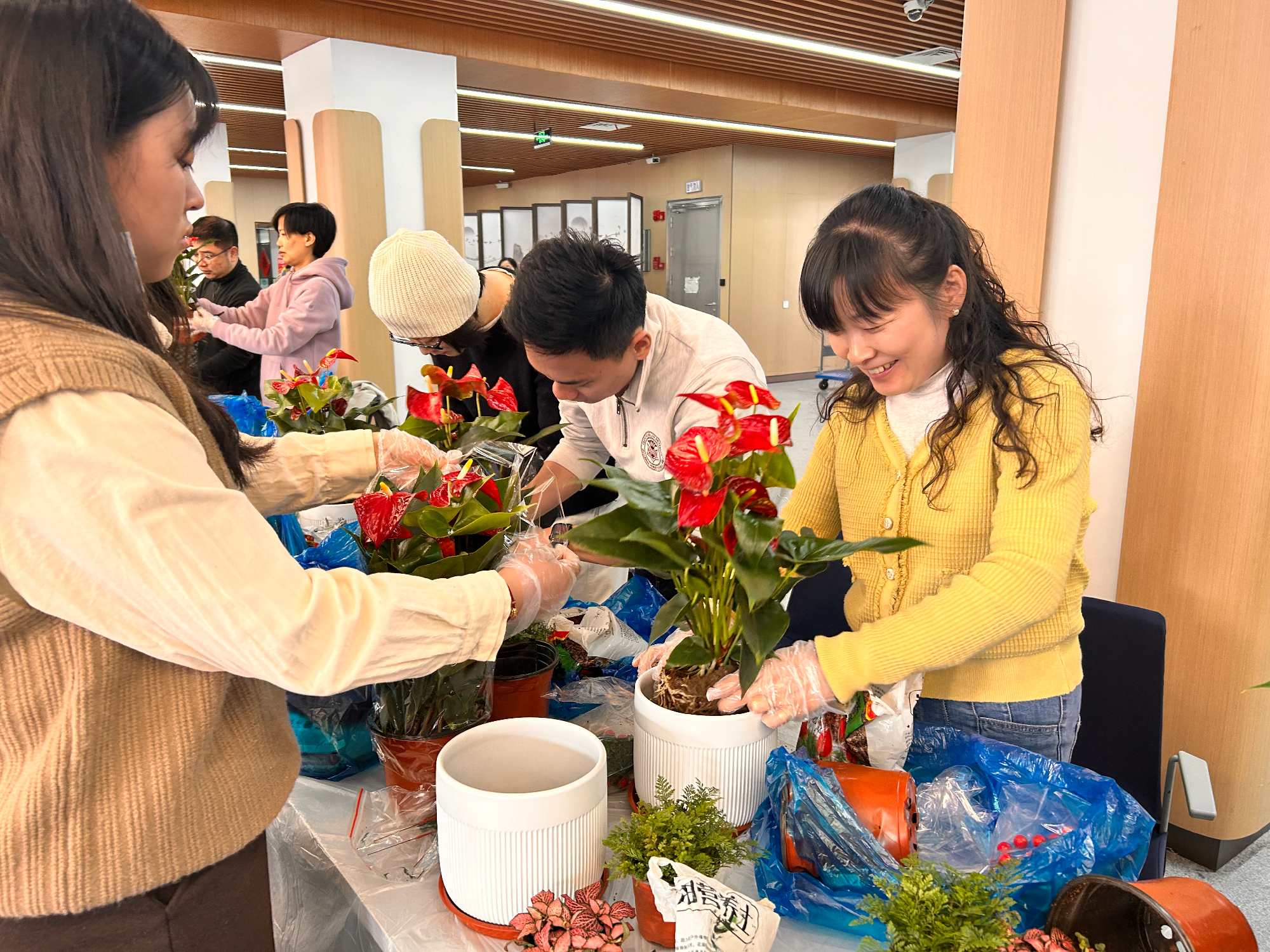 2025年12月17日,安泰经管学院工会精心策划的“初冬添雅韵,植此红绿”红掌盆栽DIY活动在包图A200圆满结束。全院120余位教职工齐聚一堂,在指尖劳作中亲近绿色、释放压力,在温馨互动中增进情谊,共同度过一段充满绿意与乐趣的午间时光。