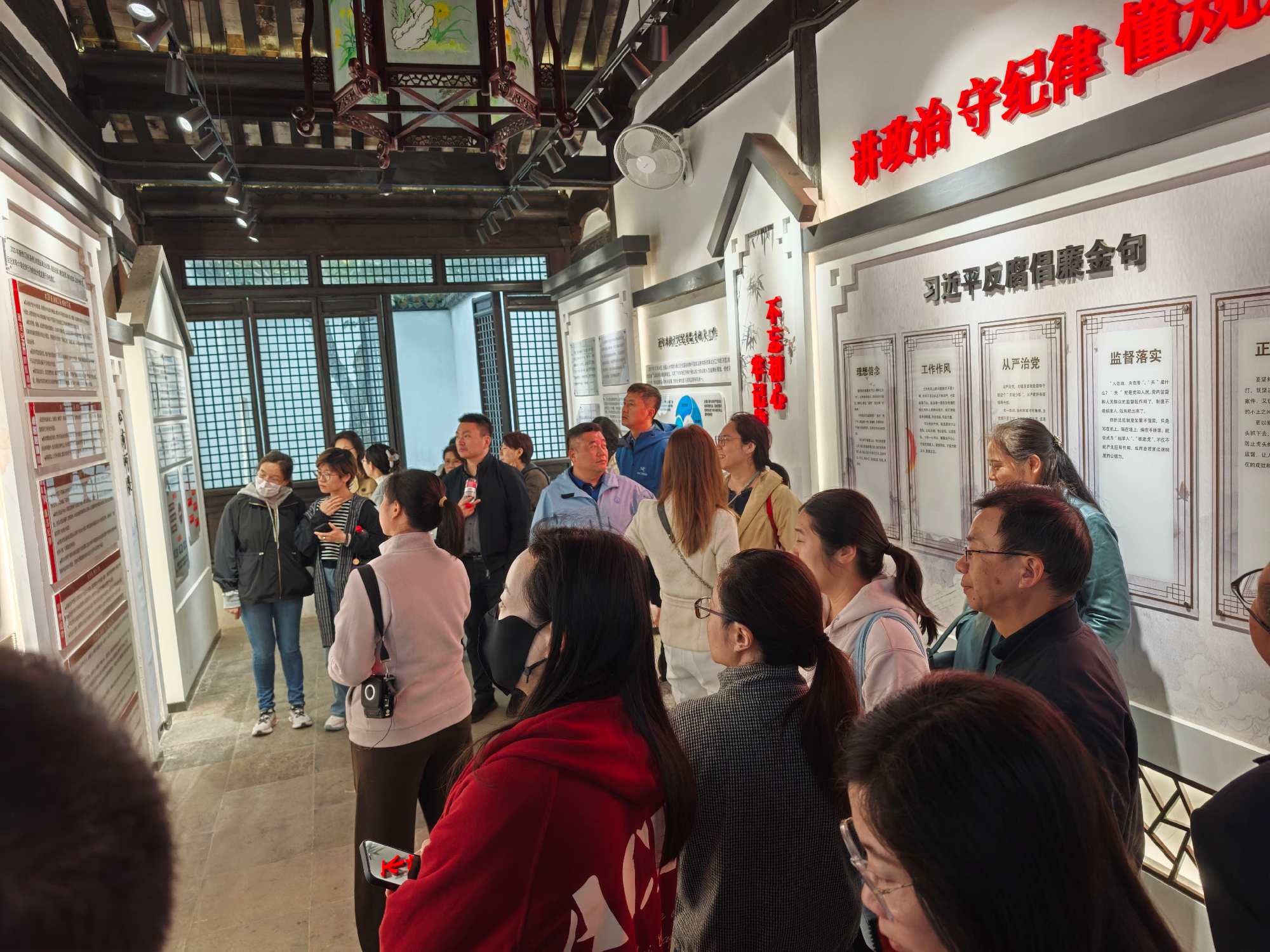 在泗泾镇匾额廉洁文化教育基地,大家先后参观了三大核心展区,通过42块明清及近代廉洁匾额,系统了解我国传统廉洁文化的演变与传承;深入学习了中国共产党成立以来纪检监察机关的发展历程,明晰新时代廉洁建设的传承与使命。大家在空间、人文与历史的深度交融中,感悟到传统廉洁文化的精神内涵、先贤清正为民的操守与党的纪检监察事业传承一脉相承,共同构筑起新时代干部廉洁履职的精神根基,为日常工作中坚守底线、践行担当提供了鲜明指引。