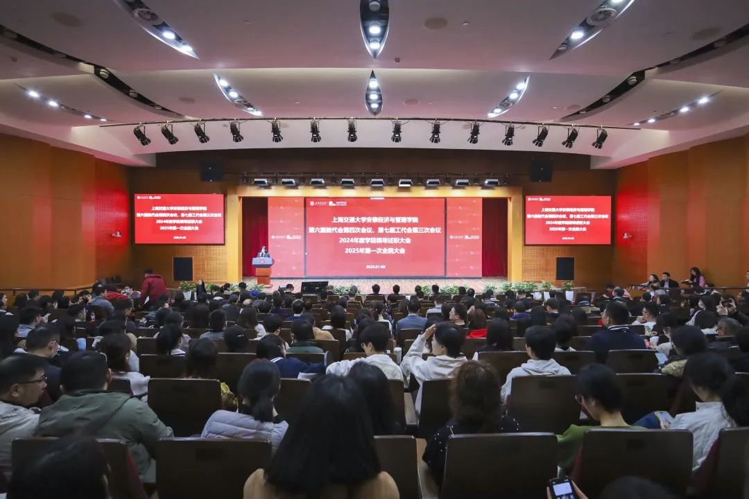 2025年1月8日,欧宝app官方网站下载安泰经济与管理学院第六届教代会四次、第七届工代会三次会议(以下简称“双代会”)、2024年度学院领导述职大会、2025年第一次全院大会暨2024年度表彰大会在包兆龙图书馆召开。学院党政班子成员及全体教职工在现场出席了会议,深圳研究院、安泰亚太中心的教职工线上参加会议。欧宝app官方网站下载校长助理、工会主席于朝阳出席并致辞。