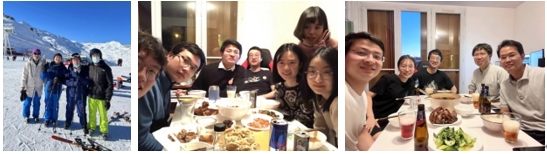 在2021年底到达法国时,正值圣诞节前夕,交大的同学们在法国Val Thorens雪场一起组织了一场滑雪活动。这是我的第一次滑雪,三天的摸爬滚打让我渐渐熟悉了滑雪这项活动,也跟这些朋友们渐渐熟悉了。我的室友和我在交大和APC都是同一个课题组的,所以我们合租了一个公寓,共同邀请了新朋友们一起庆祝2022农历春节。国内导师杨海军教授在巴黎出差,也来我们的出租屋聚餐,畅谈最近的学习生活。在国外日常生活中,体会到最大的不同就是每天结束学习和工作时,还需要去超市买菜做饭。