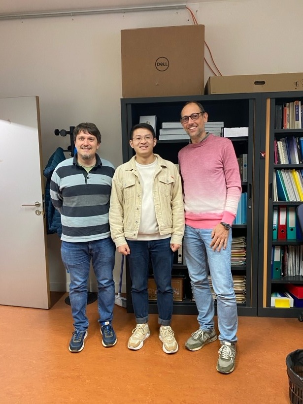 沈秋平与两位老师的合影(右一为外方导师Giovanni,左一为实验室老师Marc)