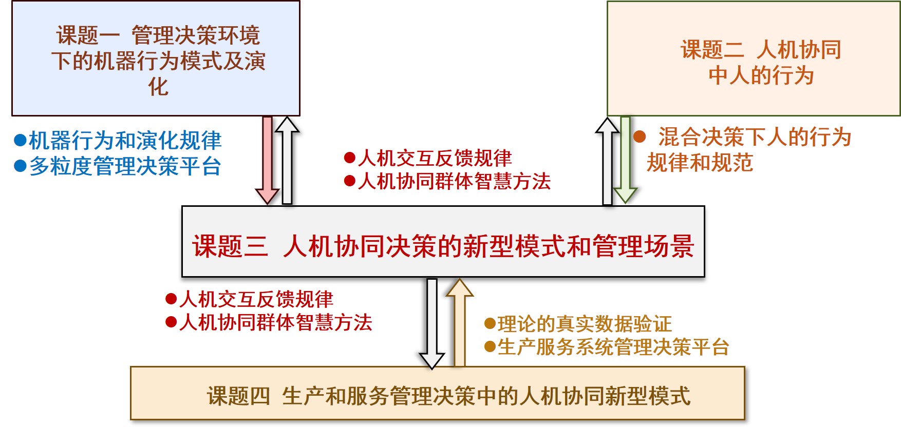 项目介绍:随着人工智能技术的发展,智能机器越来越广泛地应用于各种复杂的决策场景。人与智能机器充 分发挥各自的优势,协同决策是未来生产与服务业的发展趋势。从管理的角度研究人机协同决策的新 型模式和管理场景,对于提高人机协同决策的效率与效果、实现人机协同互补增强效应意义重大。因 此,本项目围绕人机行为影响、作用机制与长期演变规律研究、考虑人机行为的人机协同决策模式与 人机交互反馈机制研究、考虑人机行为的人机协同群体智慧形成机理研究三个科学问题,研究人机信 任与合作的影响因素与作用机制、复杂管理决策场景下的人机协同决策的新型模式,进一步研究真实 管理决策场景下的人机交互反馈机制与人机协同群体智慧方法、与人机协同决策行为的长期演变规律 与社会影响评估。项目将在人机协同决策行为机制、模式、交互反馈机制以及群体智慧形成机理等方 面取得创新成果,为促进人机协同决策在我国的应用提供理论指导。